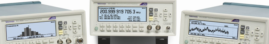 The Tektronix FCA and MCA Series frequency counter / timer / analyzer packs the functionality of a frequency counter, frequency meter and timer into one feature-rich instrument. With unprecedented resolution, you can capture very small frequency and time changes. Tektronix frequency counters and timers offer the industry's most comprehensive analysis modes, including measurement statistics, histograms, and trend plots.